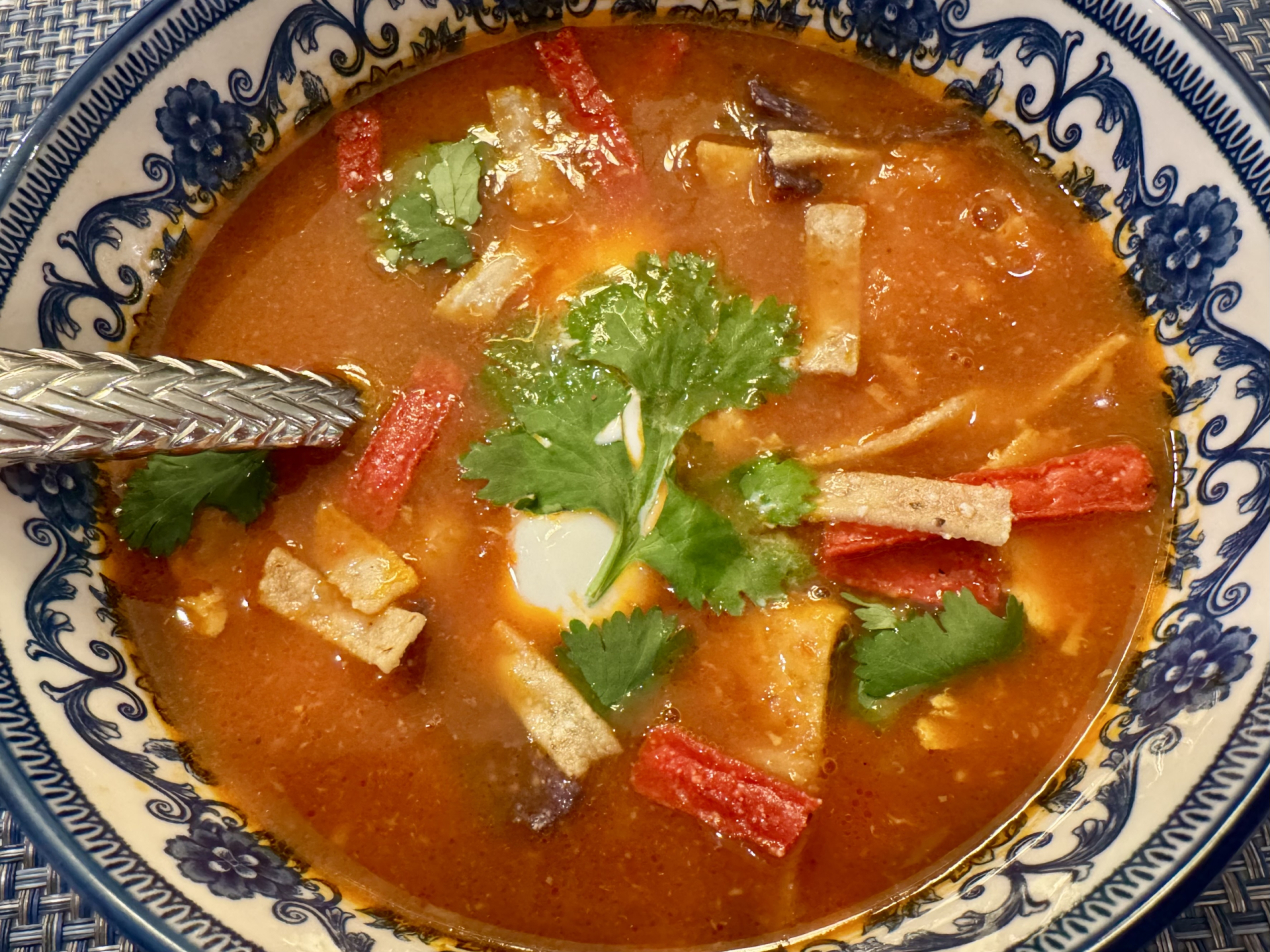- For a thicker soup, place tortillas strips or chips in the bowl before adding soup. Enjoy!